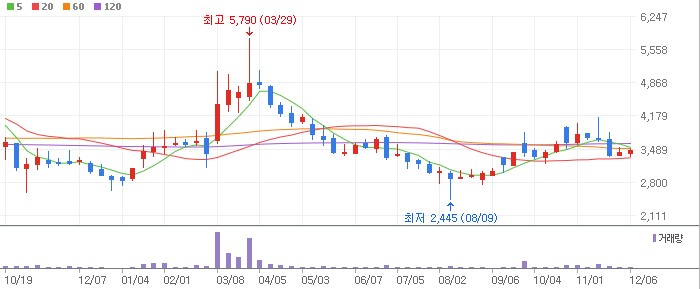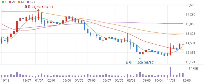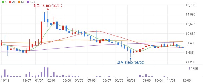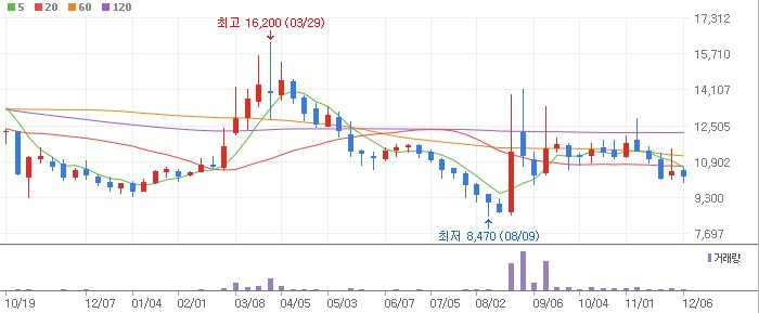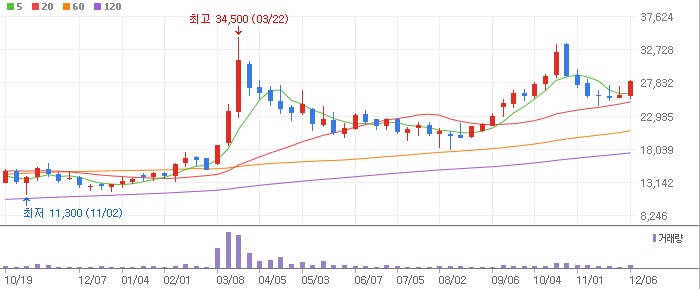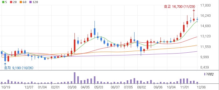 미세먼지로 인한 기관지, 호흡기 질환을 예방하는 용각산을 생산하고 있어, 미세먼지 관련주로 분류하였습니다. 최근 주가가 심상치않게 오르는 모습을 보여주고 있습니다.