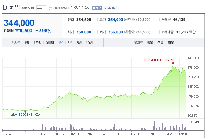 개인적으로 한 종목만 추천드리자면 DI동일을 추천드리고 싶네요.